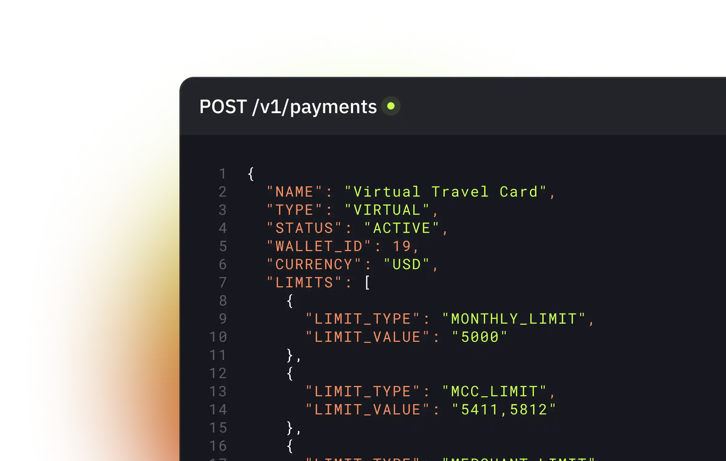 Start accepting and sending payments, issue virtual cards, and manage all operations via dashboard or API